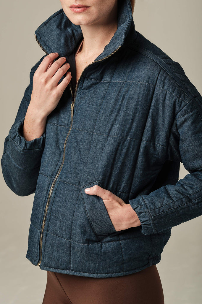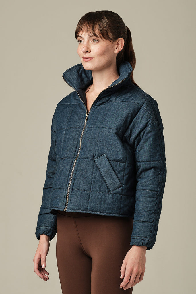 Made with shape-retaining stretch denim and a lightweight fill, this jacket offers insulation while allowing you to move freely. Perfect for layering over your everyday essentials, it's your go-to piece for laid-back days, travel, or outdoor adventures.